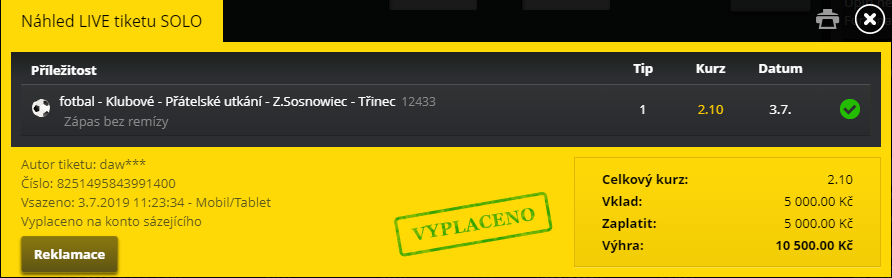 Zde najdete ukázku mých posledních tipů, které jsem doporučil svým klientům.